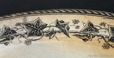 Garage sale season is here and I went to a really great one! The lady holding the sale had lived on the SW coast of England for 7 years and had gathered many goodies while there. She was parting with some of them in her sale! Look at this wonderful old stoneware platter! I don't mind chips and crazing...it's just life experience to me! This old English beauty is from Hampson & Broadhurst circa 1850...
